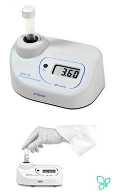 Денситометр Den-1B предназначен для измерения мутности клеточных (бактериальных, дрожжевых) суспензий в диапазоне 0-15 ед. Мак-Фарланда (калибровка прибора производится в диапазоне 0-6 ед. МкФ). Прибор позволяет проводить измерения оптической плотности при фиксированной длине волны, а также количественную оценку концентрации окрашенных растворов, абсорбирующих зеленый свет. Возможно питание денситометра как от сети, так и от 3-х батарей типа АА.Длина волны, нм – 565±15; диапазон измерения, ед. МкФ – 0-15; диапазон калибровки, ед. МкФ – 0-6; дискретность, ед. МкФ – 0,01; точность измерений, % – ±3; время измерения, сек – 1; минимальный объем образца, мл – 2; внешний диаметр пробирок, мм – 18 (без адаптера), 16 (с адаптером A-16); источник света – белый светодиод; детектор – фотодиод; возможность использования батарей (АА, 3 шт.); ЖК-дисплей; габариты, мм – 165×115×75; вес, кг – 0,9. Комплект поставки: денситометр Den-1B, блок питания, 3 батареи типа АА, адаптер A-16 для пробирок диаметром 16 мм.