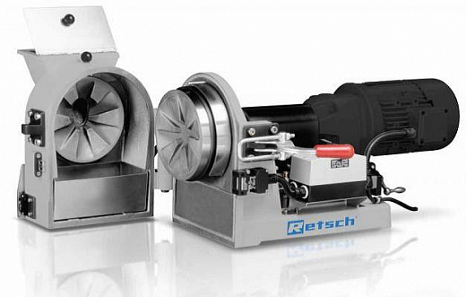 Мощной мельнице DM 200 достаточно всего нескольких минут, чтобы получить требуемую тонкость измельчения материалов (бетон, боксит, буровые керны, высушенные пробы земли, гидроксиапатит, гипс, гранит, зубная керамика, кварц, кокс, мел, осадки сточных вод, почва, руды, спеченная керамика, стеатит, стекло, строительный мусор, уголь, ферросплавы, цементный, линкер, шамот, шлак, электротехнический фарфор). Принцип работы мельниц DM 200 В DM 200 измельчаемый материал поступает через воронку в центр пылезащищенной размольной камеры между двумя вертикально расположенными размольными дисками. Один из размольных дисков вращается относительно другого и захватывает измельчаемый материал. Требуемый эффект измельчения достигается при помощи сил давления и трения. Вещество предварительно измельчается на зубьях размольных дисков, которые постепенно расширяются от центра диска к краю. Затем под действием центробежной силы материал выбрасывается во внешнюю область размольных дисков, где происходит тонкое измельчение. После того как измельченное вещество проходит через щель между дисками, оно попадает в приемную емкость. Ширина щели может быть задана непрерывно в диапазоне от 0,1 до 5 мм даже во время измельчения. Для проверки рабочей ширины щели предназначено смотровое окно.Характеристики мельниц DM 200 Мельницы DM 200 имеют следующие характеристики:исходный размер частиц, мм — до 20;