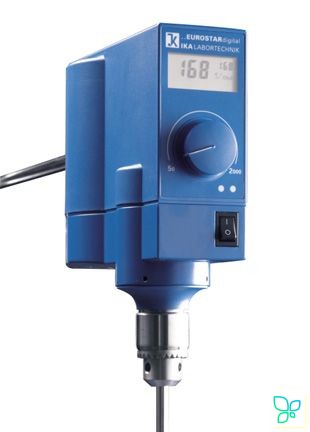 Максимальный перемешиваемый объем по воде, л — 20;диапазон скоростей, об/мин — 50-2000;вязкость, мПа×с — 10 000;макс. крутящий момент, Н×см — 30;диаметр стержня перемешивающего элемента, мм — 13;индикатор скорости — цифровой;индикатор крутящего момента — нет;микропроцессорный контроль скорости, система аварийного отключения, защита от перегрузок;цифровой дисплей;габариты, ШхГхВ, мм — 80×222×190;вес, кг — 2,8.