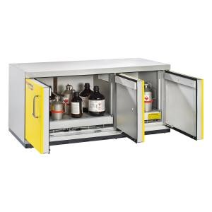 Тумбы UTS Ergo Line 90 гарантированно устойчивы к действию огня в течение 90 минут: автоматическое закрывание дверей в случае пожара; эквипотенциальные зажимы на крышке для обеспечения заземления; вентиляционные отверстия на каждом уровне; штуцеры на крышке для подсоединения к вытяжной системе; контроллеры выбрасываемого воздуха с/без вентилятора и(или) фильтрационного блока (опция); варианты с выдвигающимися поддонами с регулируемой высотой или полками; с/без центральной перегородки; варианты дверей: классические или открывающиеся при нажатии; порты доступа диам. 28 мм на крышке и боковой стенке (опция); габариты: o ширина, мм - от 600 до 1400; o глубина, мм - 593 или 493; o высота, мм - 631.Комплект поставки: тумба, поддон.Аксессуары: полки, ролики для тумб, нескользящее покрытие и полипропиленовые вставки для полок/поддонов, «красный ящик» для безопасного хранения важных документов, запирающийся ящик, безопасные контейнеры и воронки для жидкостей, твердых веществ, контейнеры для проведения чистки и др.
