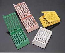 Кассеты изготовлены из полимера ацетата, имеют прорези (1×5 мм), через которые легко проникают не только соединения для проводки тканей, но и парафин. Используются для проводки и заливки тканей как в ручной, так и в автоматической технологии. Основа кассеты может служить блоком для закрепления материала в микротоме. Разноцветные кассеты удобно использовать для маркировки разных типов тканей.